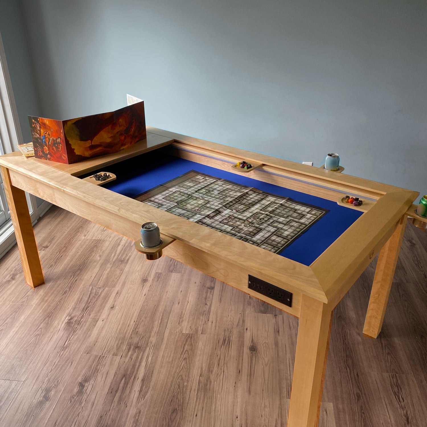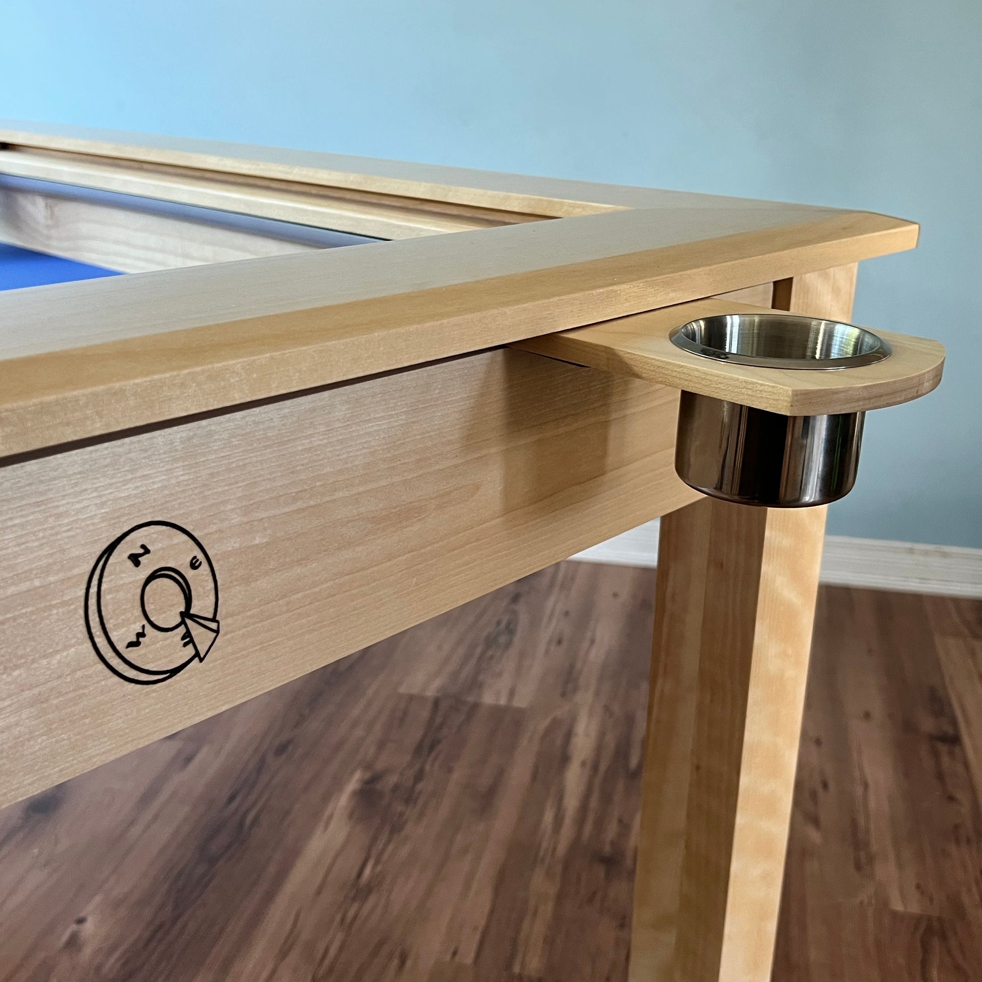 Our Game Table Drink Holder gives you the ability to add extra cup holders to your Adventure game table! This product includes the wooden stand and the metal cup holder, which are easily attachable to the sides of your table. It will be a practical and useful accessory for your next game party with family or friends.